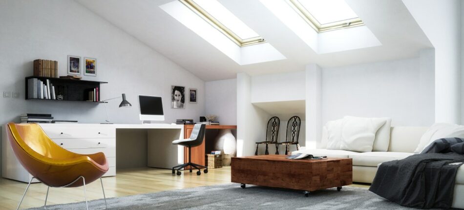 Les combles de faible dimension sont adaptés à l’aménagement d’un espace de travail. Il est important de définir avec soin l’emplacement du bureau pour bénéficier d’une luminosité suffisante et installer l’écran de l’ordinateur. En fonction des appareils électriques, vous devez prévoir le nombre de prises de courant nécessaires.