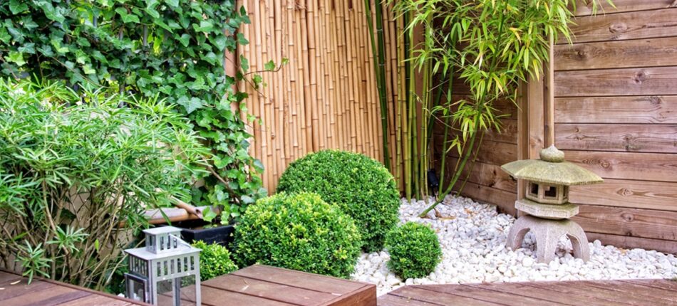 Besoin d’un havre de paix ? Optez pour le jardin zen, où sable blanc, galets et bois se mélangent dans une atmosphère calme et apaisante. On renforce cette ambiance avec des haies de bambou, non seulement esthétiques et pratiques pour préserver l’intimité du terrain, mais aussi faciles d’entretien. Privilégiez une espèce non traçante, sous peine de vous retrouver complètement envahis. Un petit pas japonais permettra de créer une allée piétonne pour traverser le jardin, mais veillez à éviter les lignes droites : la culture japonaise privilégie l’asymétrie et associe les nombres impairs à la positivité. Relaxez-vous avec le bruit de l’eau qui ruisselle en installant une mare, une cascade artificielle ou encore une fontaine. Pour les amoureux des animaux, pensez à y placer des carpes koïs qui renforceront la référence au Japon. On peut également s’inspirer de l’art du feng-shui pour aménager un espace reposant au milieu de statues et de lanternes.