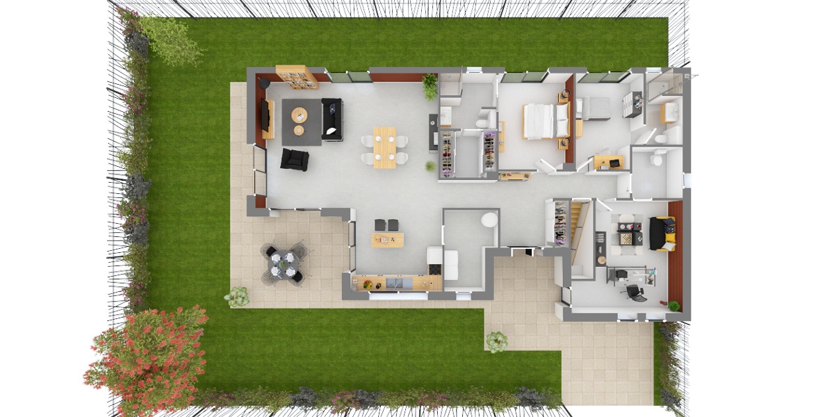 Quelques visuels 3D de l'intérieur de cette maison réalisée par Maisons de Manon.